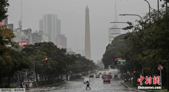 资料图:阿根廷布宜诺斯艾利斯,街头行人车辆稀少。