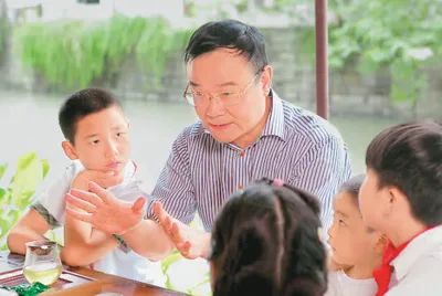 图为朱培华在给孩子们讲述音乐创作背后的故事。