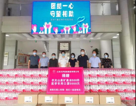 在南京,南京市侨商联合会副会长、江苏天伊控股集团有限公司董事长马丽娜为栖霞街道送去了500箱矿泉水和5000只口罩;江苏敖广日化集团股份有限公司向多个政府部门捐赠防疫物资。