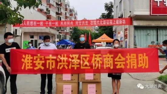 在淮安,淮安市洪泽区侨商会会长、江苏自然风纺织品有限公司董事长王泽胜,为社区值守人员捐赠医用防护口罩两万只;区侨商会会长单位亚朵酒店精心准备,周到服务,为在酒店隔离的100多位市民提供后勤保障;江苏通圆回转支承有限公司、江苏富有旅游开发有限公司、江苏紫山生物股份有限公司、江苏陶氏工贸有限公司等侨商会会员单位主动捐款捐物,为抗疫助力。