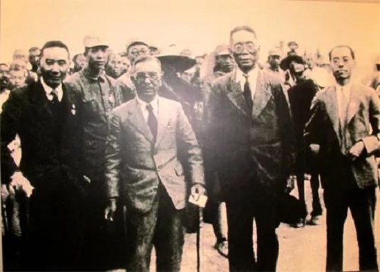 1940年5月31日,李铁民(前左)随陈嘉庚(前排中)率南洋华侨回国慰劳团抵达延安
