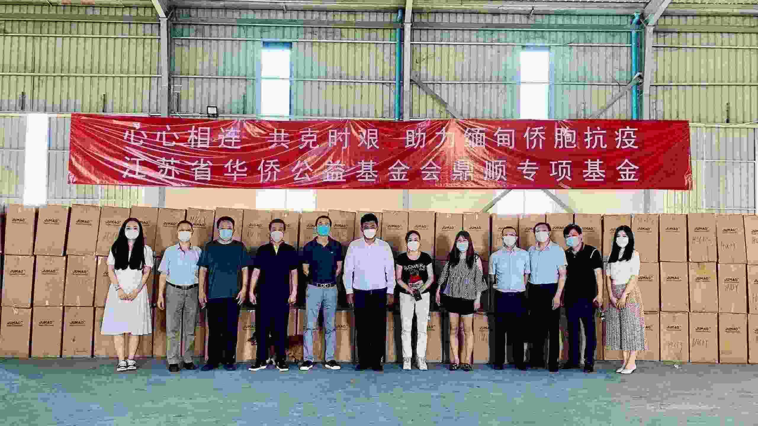 对江苏省侨联、江苏省华侨公益基金会和鼎顺专项基金及时伸出援助之手,缅甸江苏商会会长惠源动情说到,“在缅甸医疗物资缺乏的关键时期,感谢江苏省侨联、江苏省华侨公益基金会和鼎顺专项基金,心系侨胞冷暖,及时伸出援手,争分夺秒筹集运送物资,为在缅侨胞战胜疫情增添了信心。”