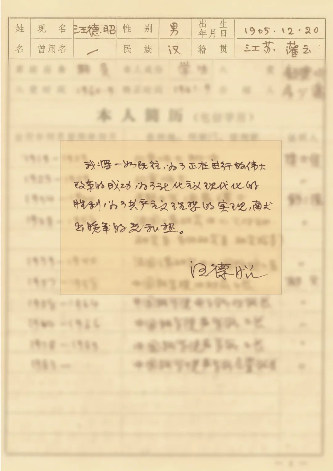 ——摘自汪德昭1985年9月《中国共产党党员登记表》