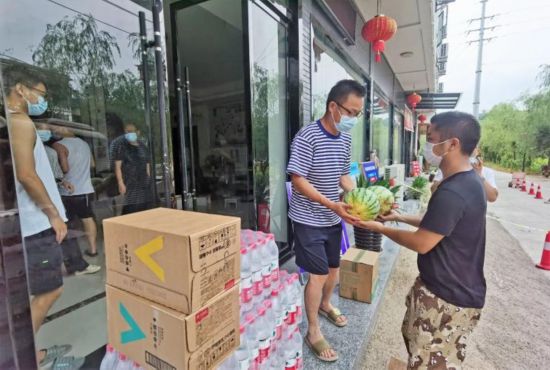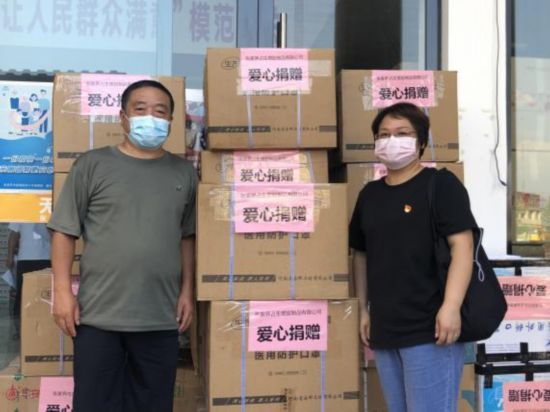 得知市侨联参与包保的高风险区永定街道回龙居委会急需一批防疫物资,8月15日,市侨商会会长田刚代表市侨商会会员给回龙社区茂隆商城联合小区捐赠了2000个口罩、一桶84消毒液、一件84消毒液(24瓶)、200双医用隔离手套、喷雾器一个,支持回龙社区疫情防控包保工作缓解了燃眉之急。