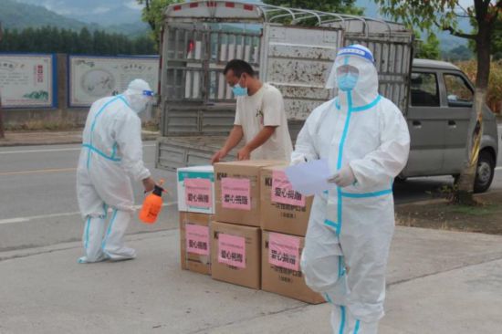 张家界市侨商会会员企业张家界大峡谷旅游开发有限公司,7月30日就积极响应政府号召,第一时间关闭景区,保障游客安全。张家界大峡谷景区负责人表示:抗击疫情狙击战已经到了决战阶段,需要我们团结一心,共同奋斗,今年景区经营状况虽然不够理想,但愿献一份爱心,尽一份微薄之力,为战胜疫情做出应有的努力。8月7日,满载着疫情防控物资的车辆从张家界大峡谷景区出发,奔赴三官寺土家族乡的17个乡村55个疫情防控点。张家界大峡谷景区党支部联系三官寺土家族乡人民政府了解目前疫情防控物资缺口的实际情况,张家界大峡谷景区立即调配相关资源,将口罩、酒精消毒液、瓶装饮用水、饮料、水果等一大批物资及时运抵各个疫情防控点。