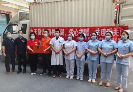 张家界市侨商会副会长单位张家界九天生物科技有限责任公司在永定区卫健委、永定区红十字会的协助下为张家界市6个核酸检测点送去300件消暑解渴的葛根饮料,60件葛根饮料对接桑植县共青团给各个卡点一线志愿者赠送,对接县妇联40件饮料、5件酸辣粉分别定点赠送。捐赠价值为49200元,为疫情防控贡献自己的一份力量,充分展现了合力打赢防控“新冠”攻坚战的信心和决心。
