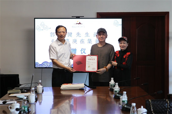 9月1日下午,民盟中央美术学院副院长、原福建省画院院长郭东健及夫人到访中国华侨历史博物馆,向我馆捐赠其国画作品《陈嘉庚在集美》。