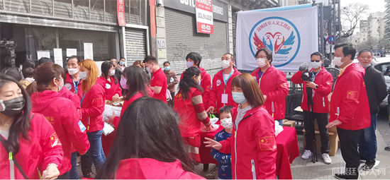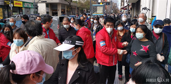 昨日,阿根廷华人义工团队联合阿根廷华文教育基金会在布宜诺斯艾利斯市第十一(ONCE)区福旺超市门口向旅阿侨胞分发防疫物资,其中包括每人1份防疫口罩,面罩及60岁以上老者每个人1盒连花清瘟胶囊,受到侨胞赞誉。