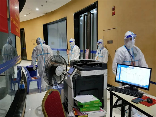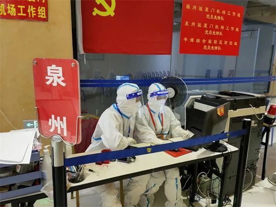 到达目的地,受到泉州工作专班同志们的热烈欢迎。当天下午马上执证上岗,投入工作。带我的小伙子很认真地教我如何正确穿脱防护用品,如何做好海外航班入境后的登记、录入、分离、派车等工作。经过多次实践后,我很快就能熟练掌握接收、转运工作技巧,第三天独立上岗,之后成为工作组中熟练的业务能手之一。