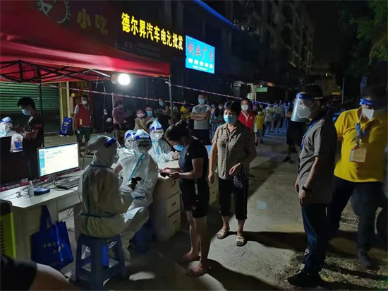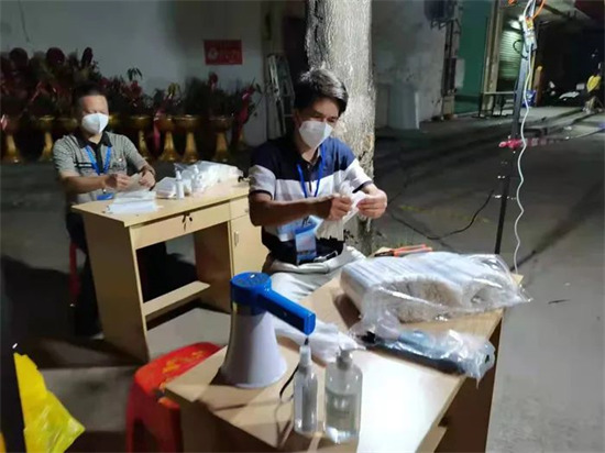 中秋节这天,是小组工作任务最多最累的一天。这一天,西湖社区加开了多个核酸检测点进行临时检测。市侨联下沉工作小组所在的核酸检测点从凌晨1点一直工作到早上6点多,有约900名居民接受了检测。小组成员们还对社区居民进行情绪疏导。