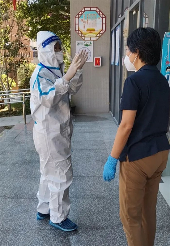 9月22日上午,林中英抵达祥平街道祥桥社区后,马上换上防护服,参与社区正在开展的核酸检测工作。林中英动作如此快速不是没有原因的,在她出发前几天,就已经做好了出征的准备。她也向组织表达了自愿参与疫情防控工作的意愿,通知一到自然“快”人一步。