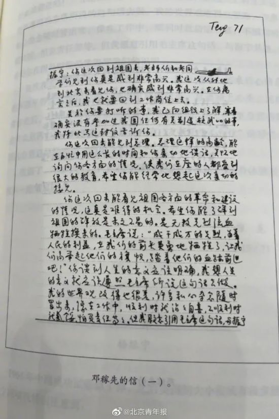 1971年邓稼先给杨振宁的信