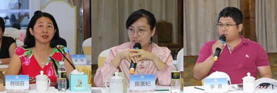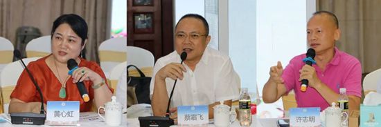 海南省侨商会执行会长李桂英、唐丽英、赵思远等积极建言献策(从左到右)