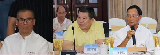 海南省侨商会执行会长张留兴,常务副会长谭鸿明,副会长符史钦交流发言(从左到右)