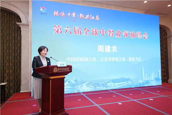 10月15日,由中国侨联指导,江苏省侨联主办的“亲情中华·魅力江苏”第六届全球中餐业领袖峰会在南京举办。中国侨联副主席、江苏省侨联主席、党组书记周建农,中国侨联文化交流部副部长邢砚庄出席并分别致辞。江苏省委宣传部、统战部、文旅厅、商务厅等省直相关部门及世界中餐业联合会、省餐饮行业协会等单位负责人,以及来自美国、加拿大、波兰、越南、南非、委内瑞拉等22个国家和地区的中餐从业者、餐饮协会及海外侨社负责人参加现场会议,近20个国家的中餐文化海外推广使者代表网上连线参与活动。峰会同步向全球侨胞直播。