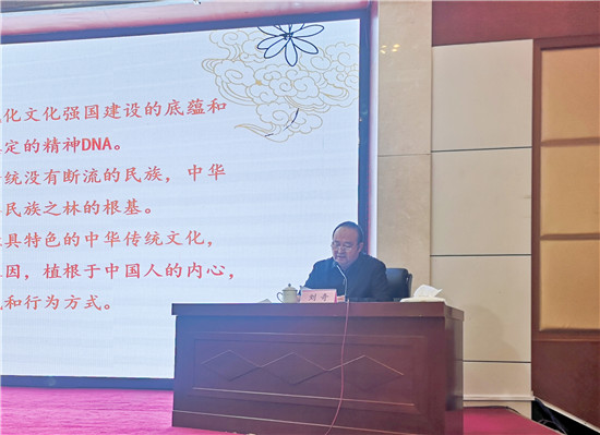 10月12日上午,应甘肃省侨联邀请,中国侨联文化交流部部长刘奇以《坚定文化自信,做好侨联文化交流工作》为题,为甘肃省侨联干部培训班全体学员授课。教学活动由甘肃省侨联主席闫鹏勋主持。省侨联党组成员、副主席徐妍丽,副主席宋政奎、黄炜、逯迈、潘加法,各市(州)、县(市、区)、高校侨联和“侨胞之家”负责人及省市县各级侨联干部共80余人参加教学活动。