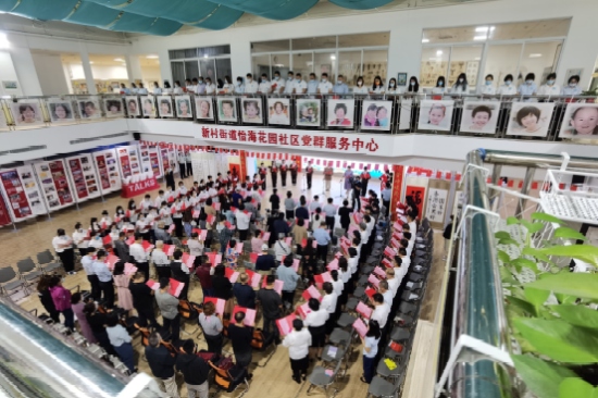 “我们读中国,沿着甲骨文沧桑的纹理,驾驭历史的厂车纵横阡陌;我们读中国,在人之初,性本善的《三字经》里,学会做人的道理……”琅琅书声出自怡海花园老年大学,百人齐声《读中国》将“全民阅读进社区”活动主旋律高亢咏诵。