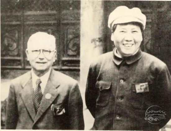 ▲1949年9月17日,陈嘉庚与毛泽东在北京中南海勤政殿前的合影。