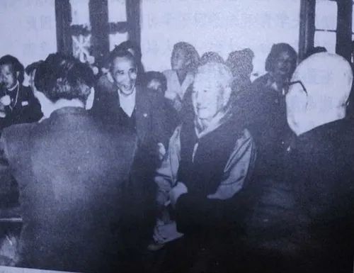 ▲1957年元旦,陈嘉庚利用假日休息时间,到邻近各县区考察。图为陈嘉庚视察晋江南安时在石井镇郑成功祖祠留影。