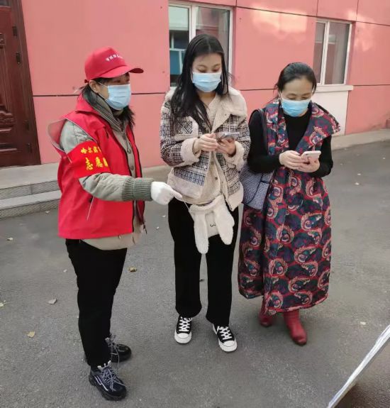 (上图)党组成员、一级调研员徐晶帮助居民扫描“龙江健康码”“行程码”