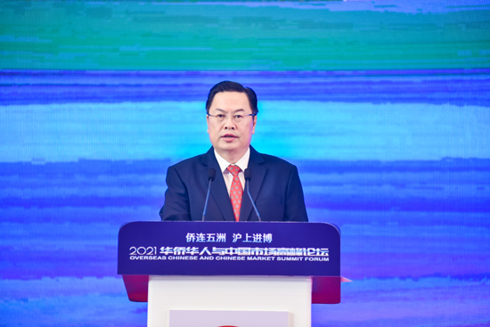 11月8日上午,“侨连五洲·沪上进博”——2021华侨华人与中国市场高峰论坛在国家会展中心(上海)举行。中国侨联党组成员、副主席程学源,上海市委常委、统战部部长郑钢淼,上海市副市长陈群、市政协副主席周汉民等出席论坛。