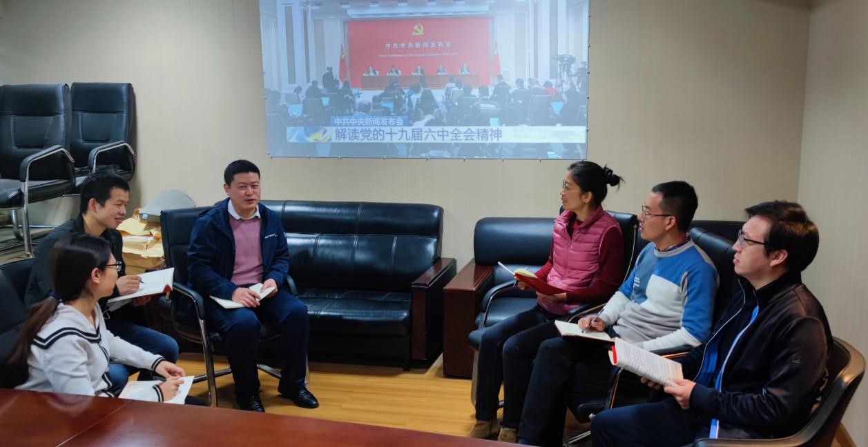 11月12日上午,党的十九届六中全会精神新闻发布会召开。青年干部们早已守候在电脑前,期待发布会对全会精神作出更全面、更深入的解读。很多同志根据个人学习全会公报的情况,带着问题听、带着感情学,不时奋笔疾书,记录下发布会的“金句”。发布会后,各青年小组展开交流和讨论,分享学习全会精神的感悟和体会。
