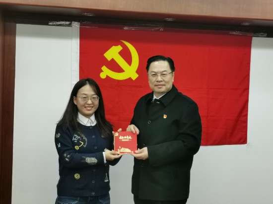 会上,支部还为黄卫卫同志庆祝了政治生日,程学源向黄卫卫颁发了政治生日贺卡,并集体重温了入党誓词。