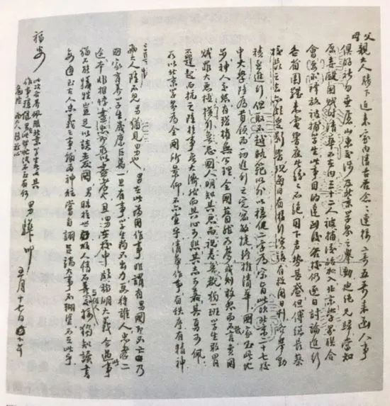 “……今年不幸,有国家大事,责任所在,势有难逃,不得已也。……两大人虽不见男犹见男也。”