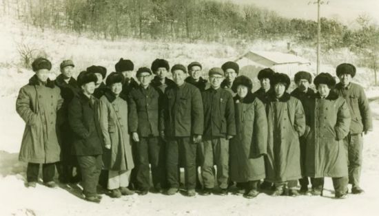 在试验基地黄纬禄与试验队的合影(前排左四)