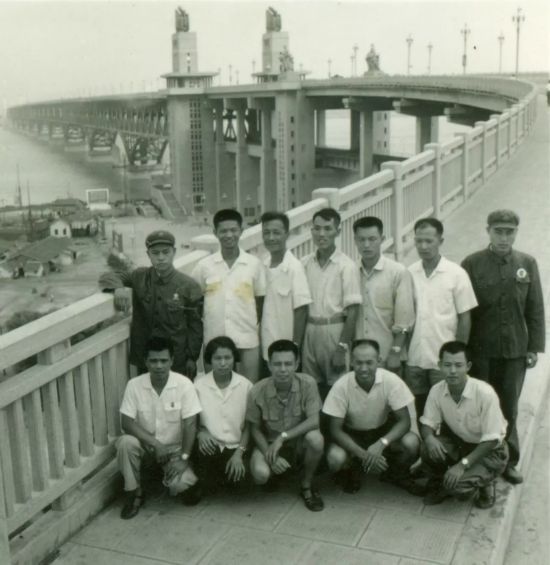 1970年7月 黄纬禄(二排左三)和同事在南京长江大桥作试验期间合影