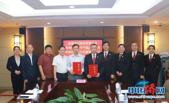 海南省侨联与三亚中院日前在三亚签署涉侨纠纷多元化解框架协议。根据协议,双方将建立健全合作机制,发挥各自优势,加强诉调对接,为侨胞侨商投资兴业海南自贸港提供政策宣传、法律咨询、诉调服务和法治保障。