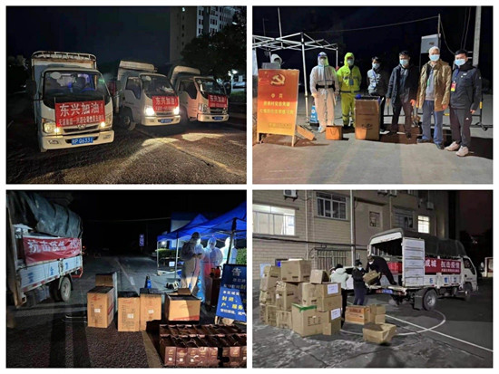 疫情发生以后,广西天源投资有限公司及时组建了一支疫情防控“爱心车队”,协助东兴市政府配送分发抗疫物资。天源公司副总经理、防城港市新侨联谊会副会长张侦智是“爱心车队”的负责人,他每天带领车队在防疫站点和居民小区来回奔忙。截止到12月30日,车队累计帮助配送木炭、猪肉、蔬菜等生活必需品约15吨,八宝粥和方便面 95件,保暖内衣、取暖器、暖宝宝一大批。