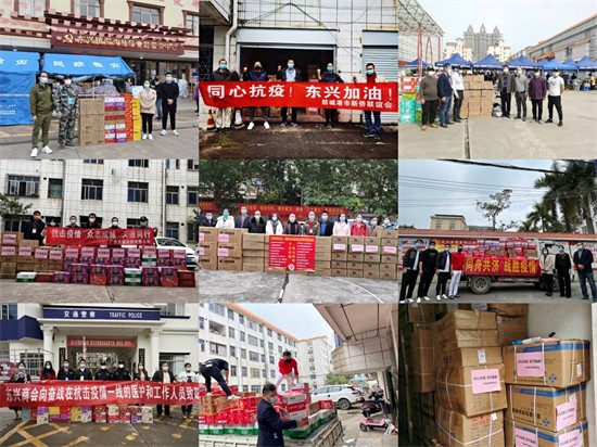 在这场没有硝烟的战“疫”里,东兴市许多侨资企业和侨社团也纷纷加入到战“疫”当中,他们或捐资或出资购买抗疫物资支援家乡抗疫。东兴安得房地产开发有限公司、广西晶锋音响有限公司等20家侨资企业和民办机构集资20000多元购买酒精、口罩和消毒液等防疫物品赠送给东兴中学,帮助因疫情滞留学校的师生解决燃眉之急;东兴市振翔进出口贸易有限公司自发采购价值22680元的火腿肠、方便面、八宝粥和矿泉水等一批食品运送到东兴市商务局,由商务局统一调配到抗疫前线;东兴华鸿光学科技有限公司向东兴市民政局捐赠价值10250元的护目镜和眼镜罩;广西陆海药业有限责任公司联合合作伙伴捐赠一批食品、日用品等物资共计1019件,总价值82800元,驰援东兴抗击疫情;侨资企业东兴市醒君酒厂、精益房产、王氏养殖场,华侨社团东兴市翻译协会等纷纷慷慨解囊……