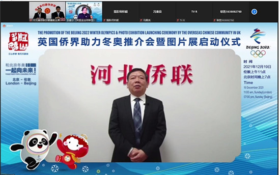 日前,由旅英侨胞组织的“英国侨界助力冬奥推介会暨图片展”启动仪式在伦敦举行。河北省侨联作为指导单位参加活动,省侨联副主席孙晋康出席线上启动仪式并致辞。