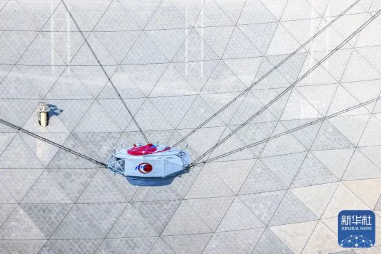 2021年12月19日拍摄的“中国天眼”馈源舱(维护保养期间摄)。新华社记者 欧东衢 摄