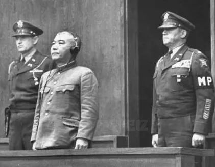 (图:远东国际军事法庭内日本战犯受审的场景)