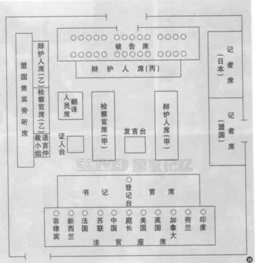 (图:审判战犯时,远东国际军事法庭的内部结构)