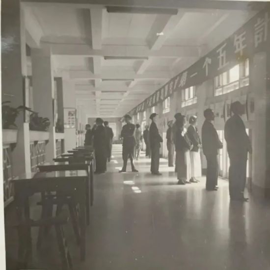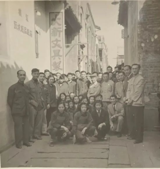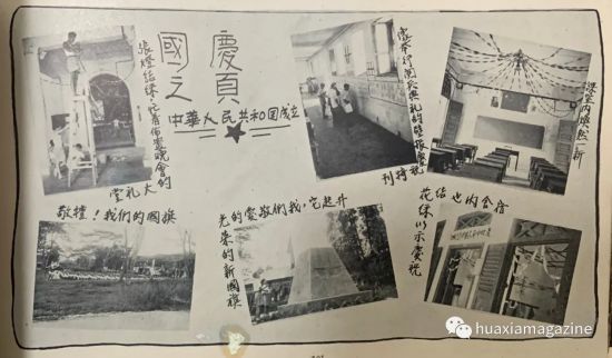 ▲1949年10月,为庆祝中华人民共和国成立,南洋侨中升起五星红旗,学生们将教室内外装扮一新