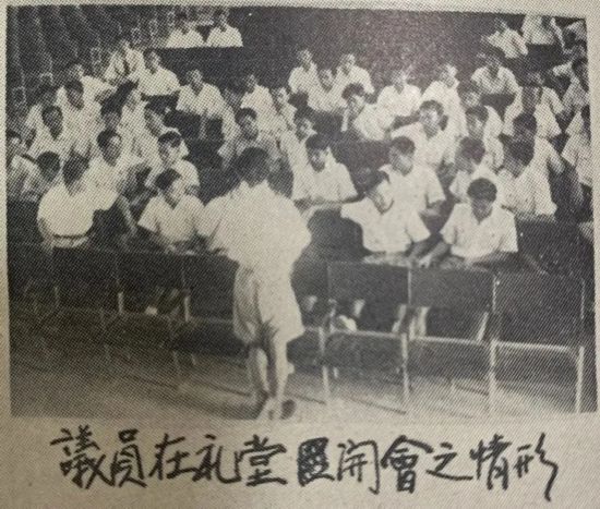 ▲南洋侨中的学生自洽会议会在学校礼堂开会
