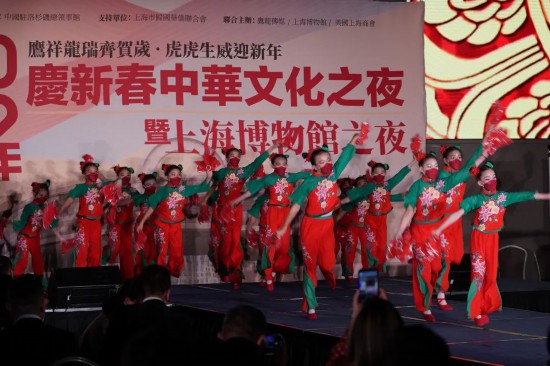 虎年新春佳节之际,为向海外推广中华优秀传统文化、上海城市形象和上海博物馆品牌,由中国驻洛杉矶总领事馆指导、上海市归国华侨联合会支持,上海博物馆和美国上海商会、美国鹰龙传媒联合举办的“2022年庆新春中华文化之夜暨上海博物馆之夜”于当地时间2月11日在美国洛杉矶举行。