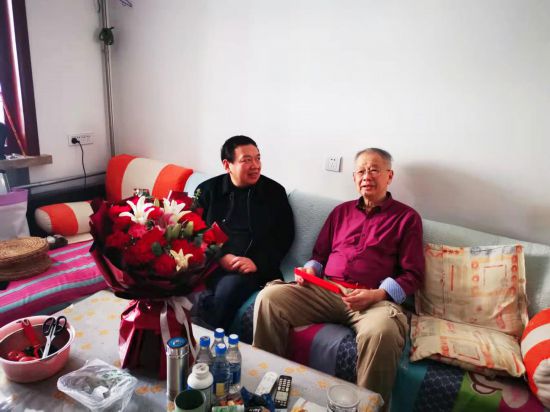 党组成员、副主席任卓平(右)看望“光荣在党50年”老党员