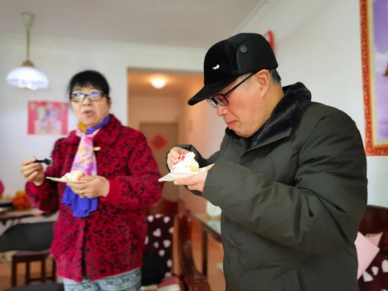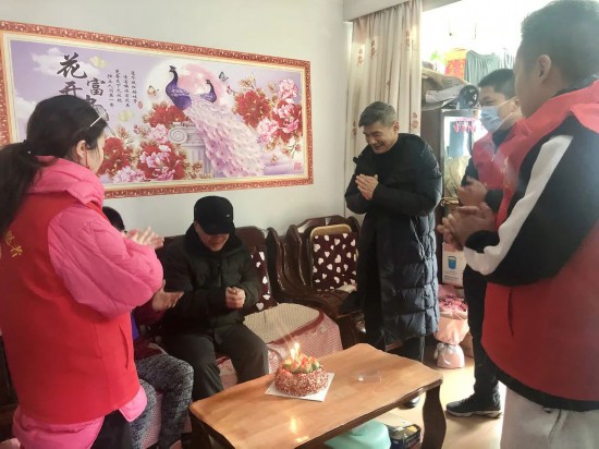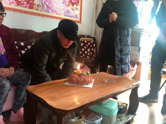 宁侨志愿者艾科朗克公司董事长秦轶轩、华设设计集团股份有限公司副主任工程师吴岚为老人送上了鲜花和生日祝福。吴玉联老人吹灭了生日蜡烛,高兴地说:“谢谢你们,家里好久没有这么热闹了!”