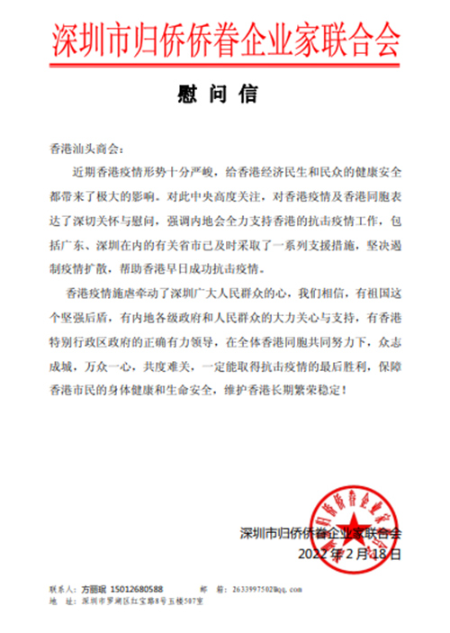 深港同心,携手抗疫。连日来,香港的疫情形势牵动着深圳侨界人士的心,深圳市侨联号召全市侨界社团、侨资企业充分发挥自身作用,全力支持香港抗疫,助力打赢疫情防控阻击战。