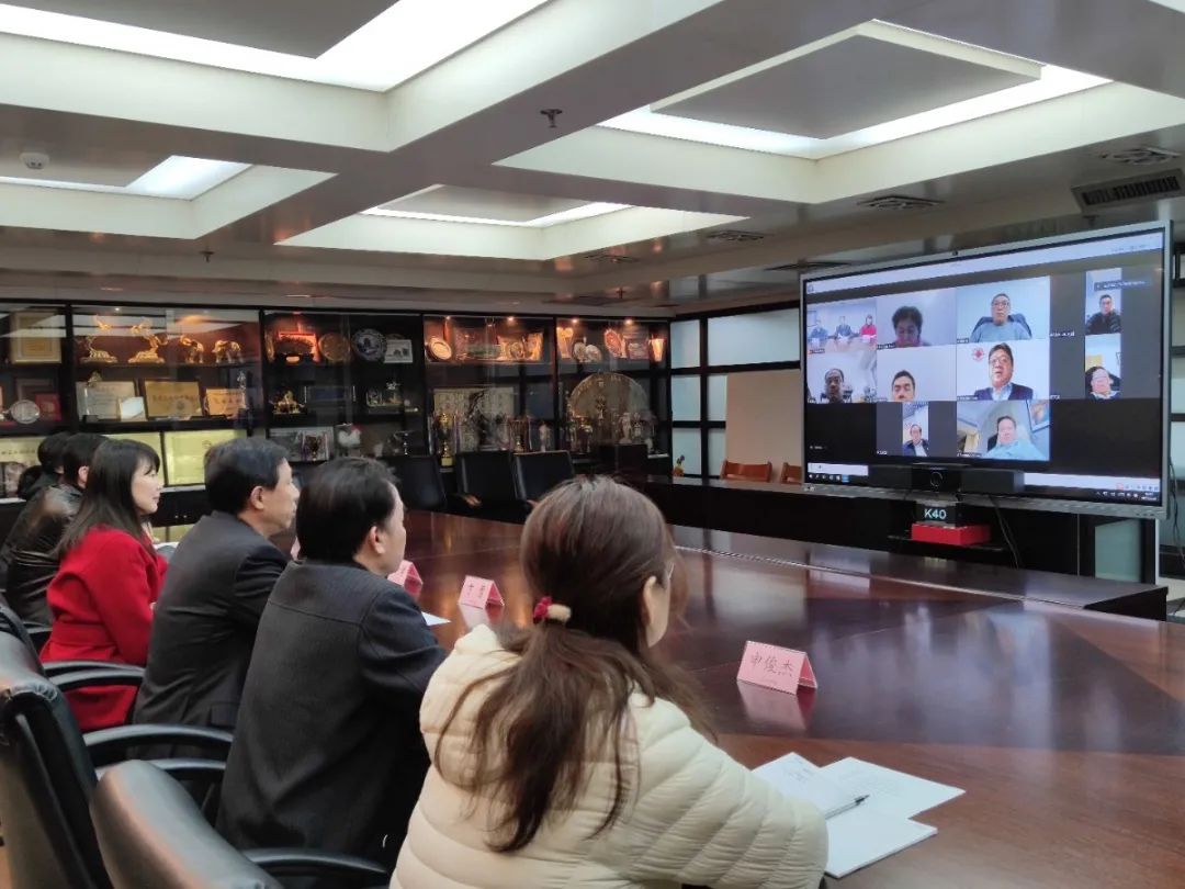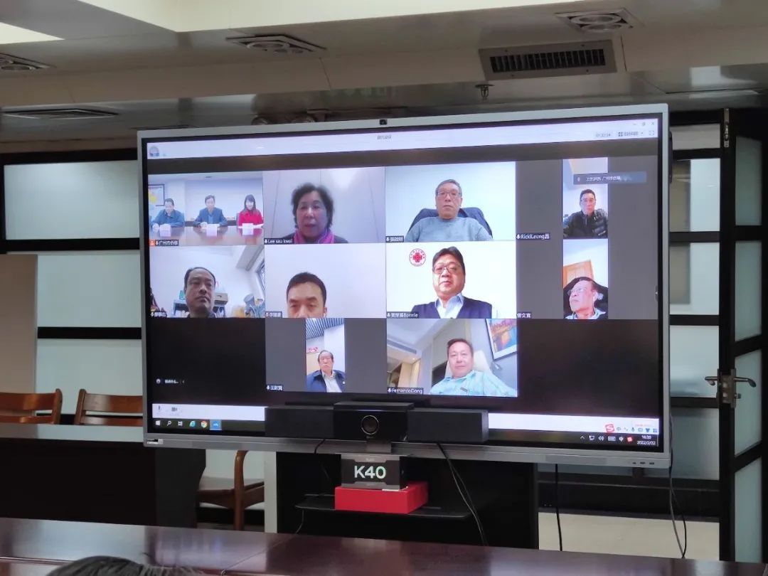 广州市侨联党组书记、主席卞勇,党组成员、副主席童慧,党组成员、副主席林瑞琪与香港侨胞代表视频连线现场。