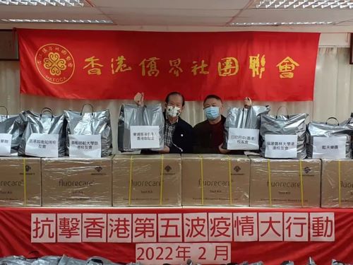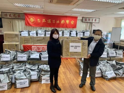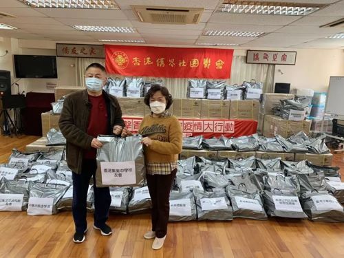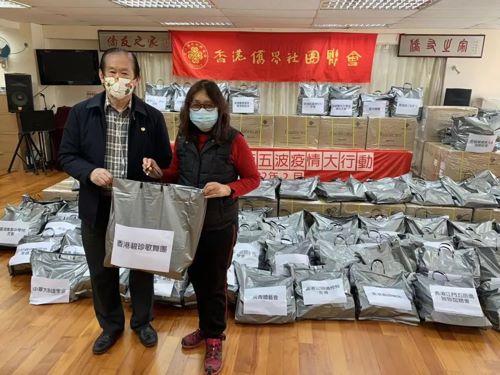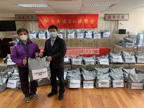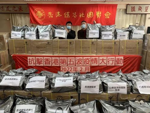 香港第五波疫情袭来,习近平总书记作出重要指示,将稳控疫情作为压倒一切的任务。香港侨界社团联会落实习总书记重要指示精神,同心抗疫,将抗疫物品交给香港侨界社团联会七七个团体会员负责人手中再转派送至各团体会员手中。