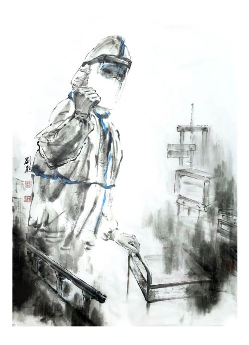疫情发生后,苏州侨界响应号召,纷纷投身志愿服务,为疫情防控贡献侨界力量。苏州市侨界书画家积极创作,丹青礼赞医护人员和志愿者们。