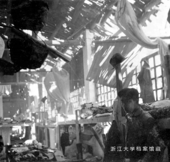 被日本飞机轰炸后的教室和校舍 (1939年2月宜山)