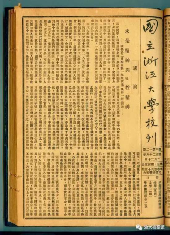 竺可桢发表在校刊上的《求是精神与牺牲精神》