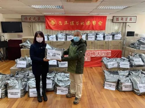香港侨界社团联会分批收到援助物资后,该会首长和义工们不顾辛劳,走在抗疫最前线,采取各种方式将该批物资分发给七十七个团体会员负责人,再转送至各团体会员手中,多方面地向市民提供帮助。