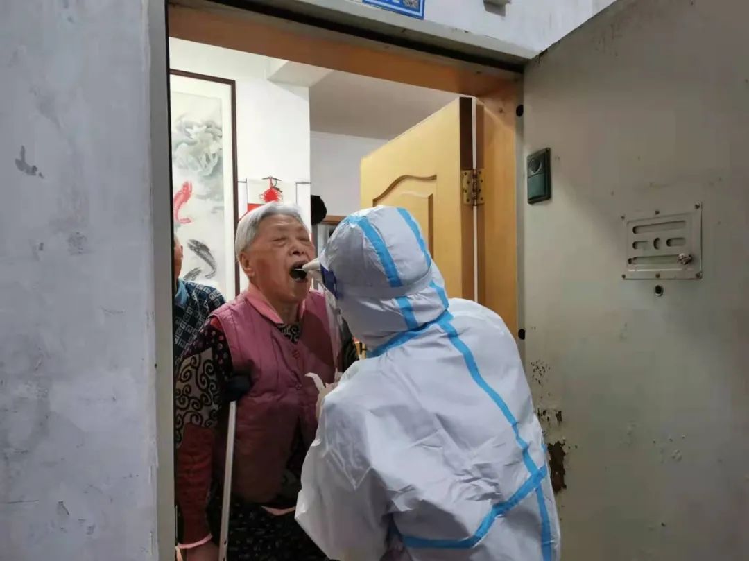 每到一户老人家中,街道社区工作人员和医务人员先进行信息登记,再消毒进行核酸检测。老人程伟炯说:“我们年纪大了走路不方便,感谢党和政府想着我们,上门免费给我们做核酸检测,做了我们也就安心了。”
